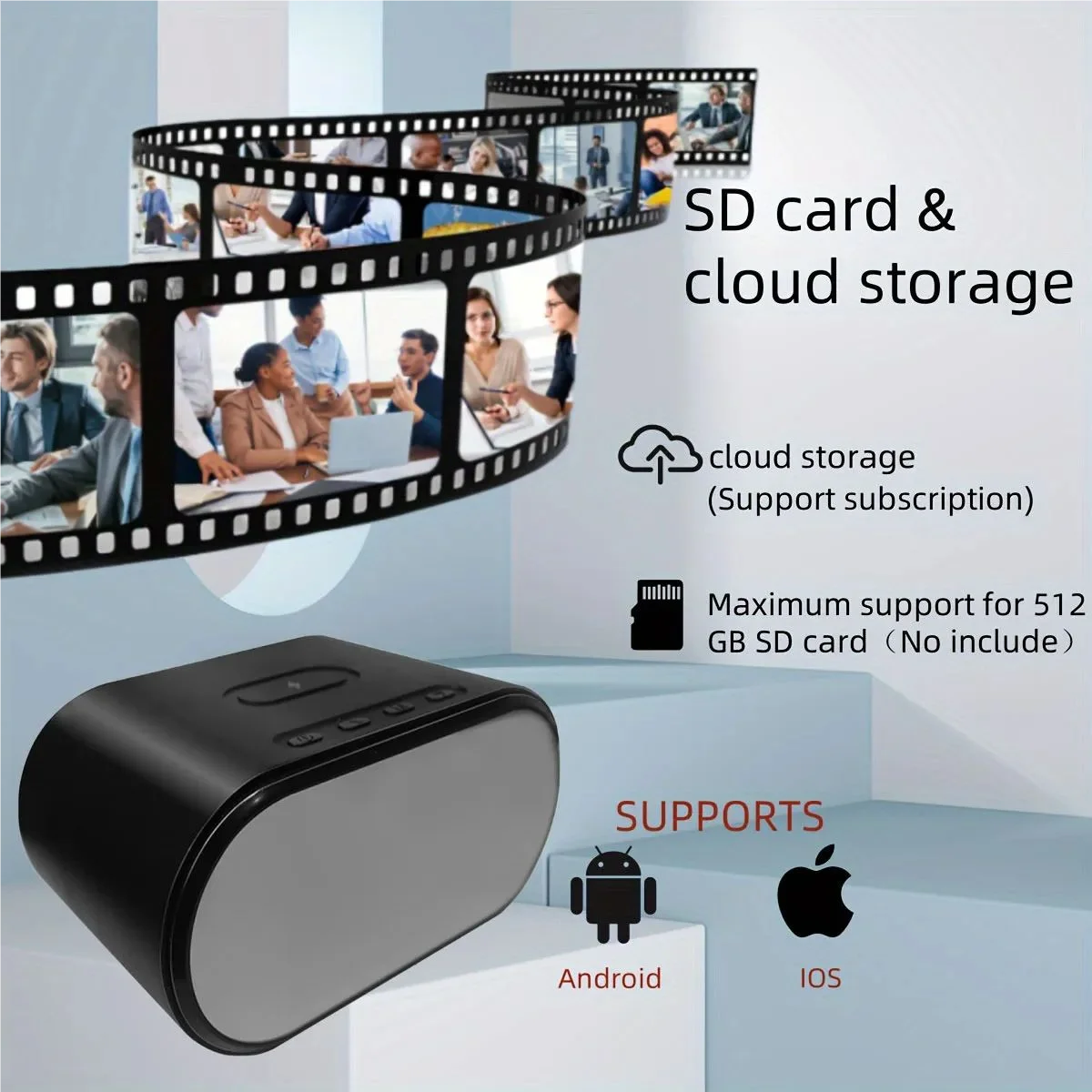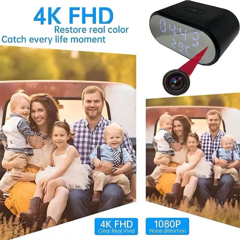 4K UHD WiFi6 Alarm Clock Camera with Wireless Charger Mini AI Human Detection Temperature Display Camcorders With 32GB SD Card
