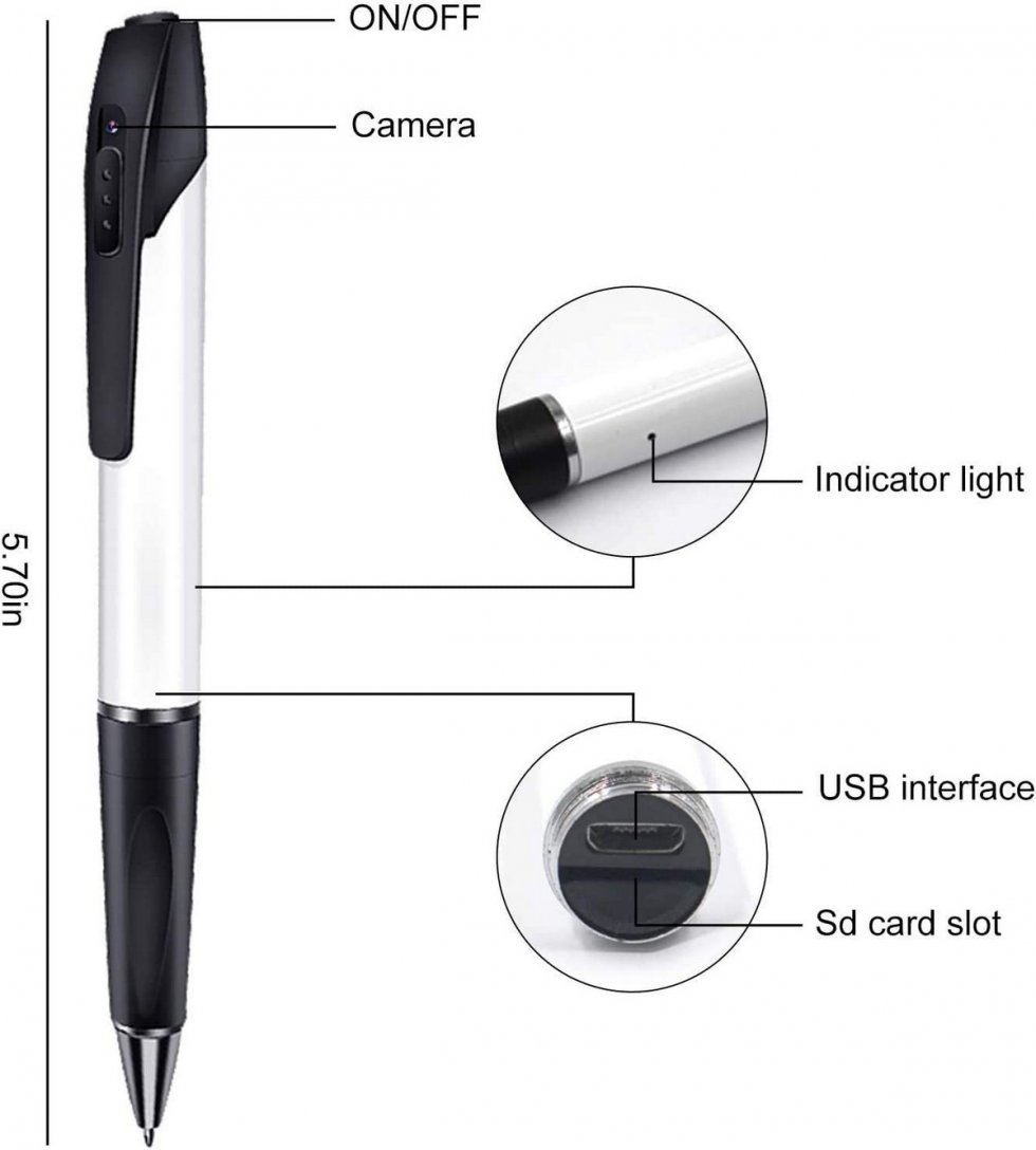 Pen with camera – Spy hidden recorder FULL HD 1080P + micro SD support up to 64GB is spy camera hidden in the pen for secret recording. Recording the video discreetly is one thing and making the quality recordings or images is another thing. The spy pen is a perfect combination of both and is really very easy to use. The spy camera looks like a stylish, elegant pen, which guarantees that no one will even think that it could be a hidden camera. The pen records video in Full HD 1080p resolution, at 30 frames per second with H.264 video compression. The pen is also equipped with a microphone, a rechargeable battery with a capacity of 170mAh and a recording life of up to 120 minutes and support for micro SD cards up to 64 GB. The pen is suitable for indoor or outdoor recording. Controlling the pen is very simple with a single button. You can write with a spy pen as with classic pen, and also you can change the refills. Buy online for a good price.